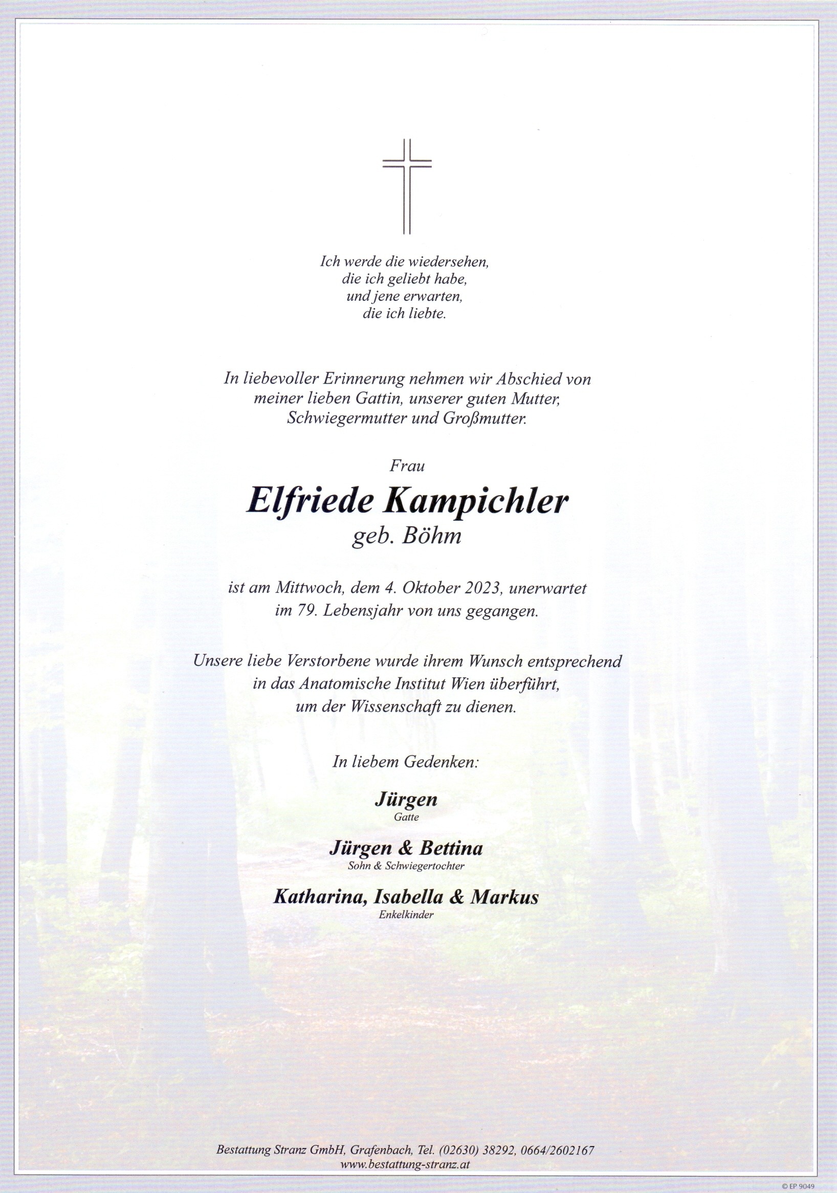 Unsere liebe Verstorbene wurde in das